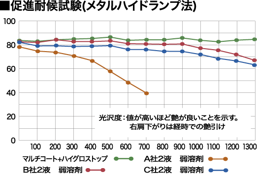 マルチコート+ハイグロストップは高い光沢度を維持